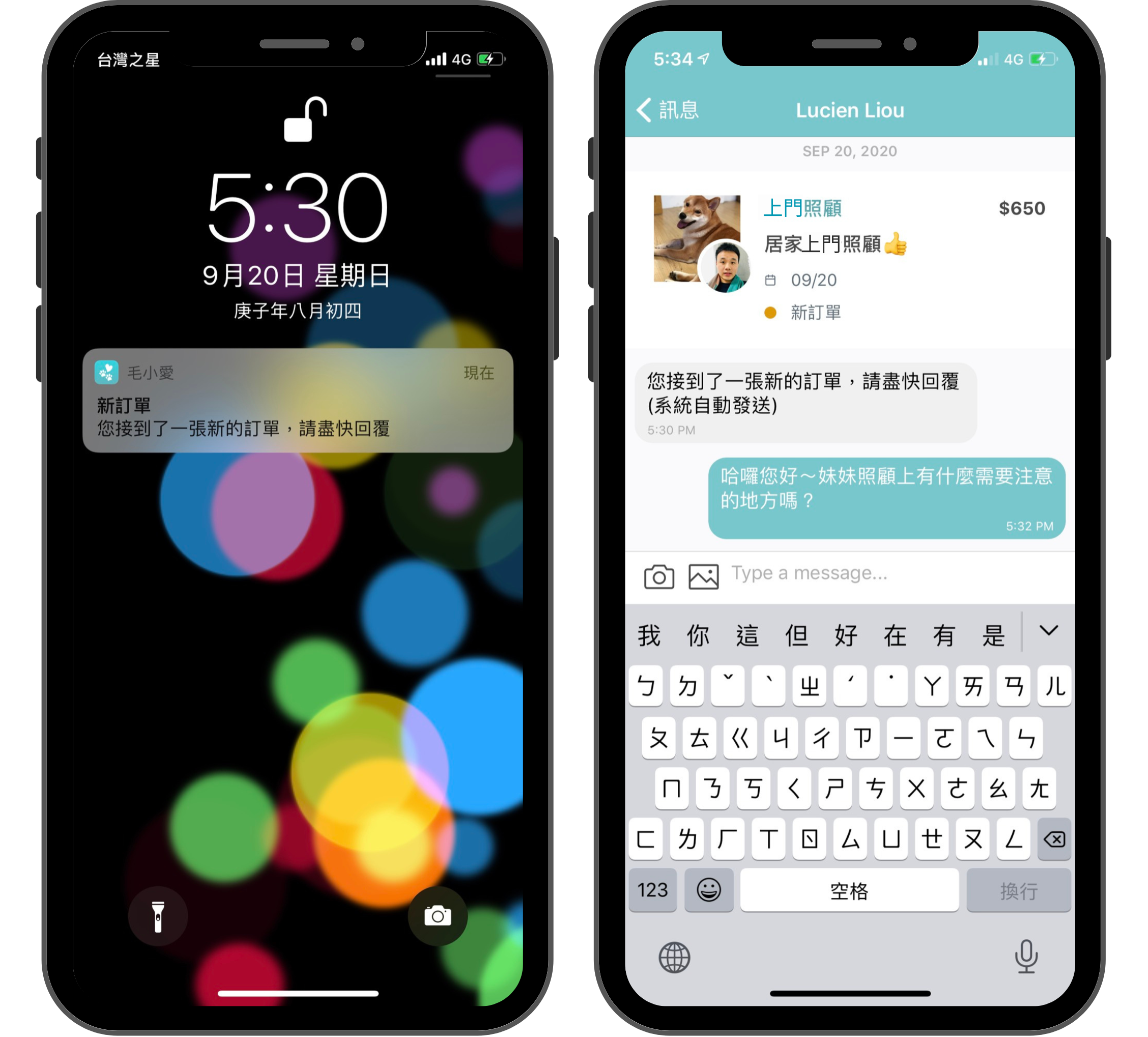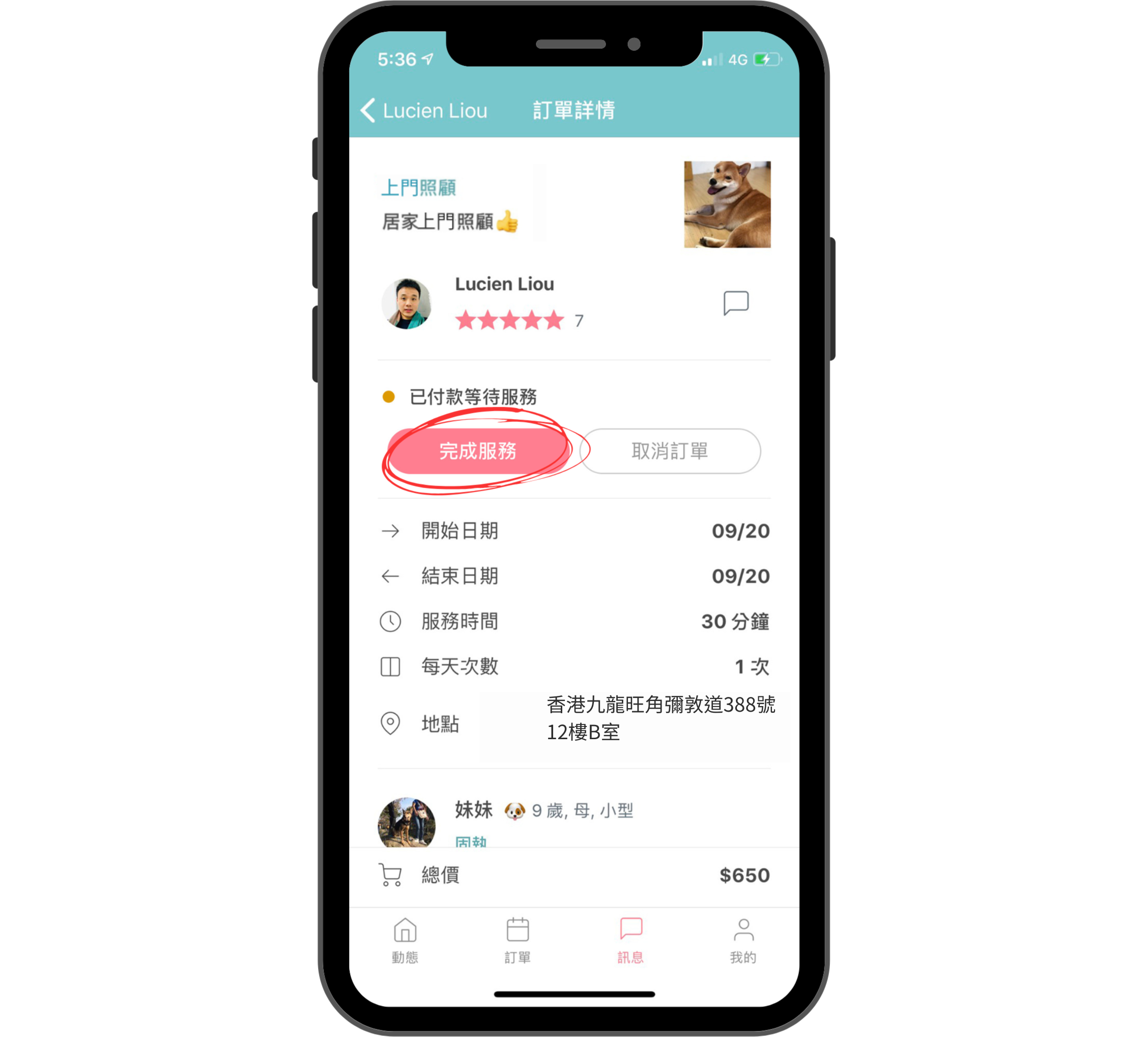 收到下單請求通知,可以點擊訂單、查看訂單內容(服務時間、毛小孩資料…等)。