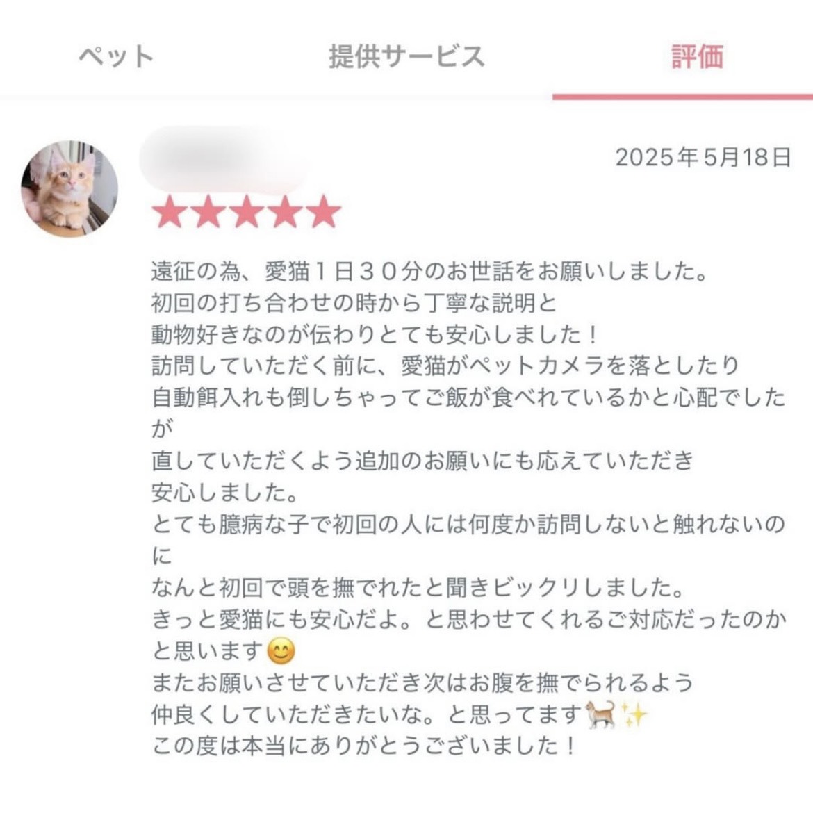 過去の利用者の評価をチェックできるので、自分に合った貓保姆を選びやすい。