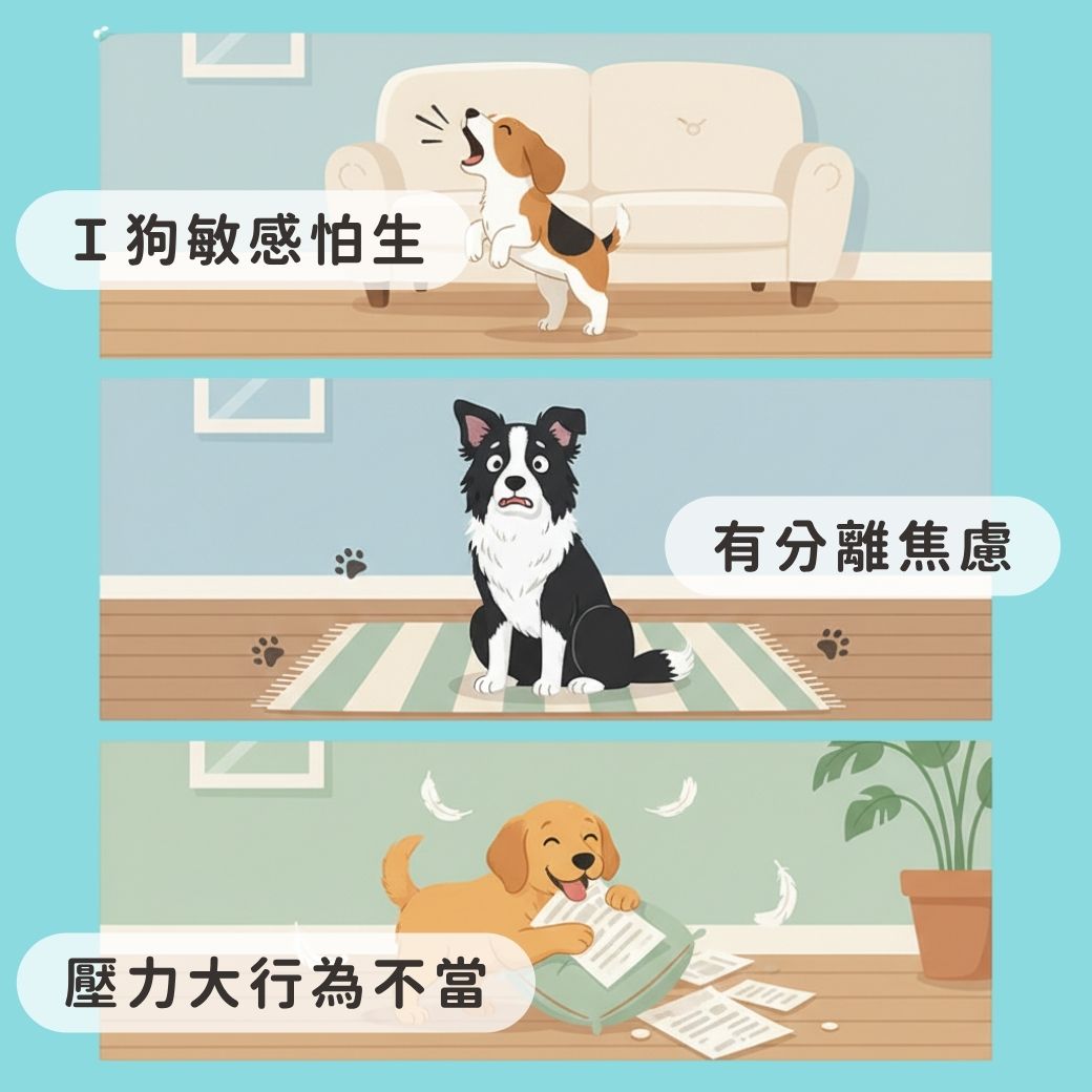 對焦慮的狗狗來說,這些刺激會放大牠的不安全感。